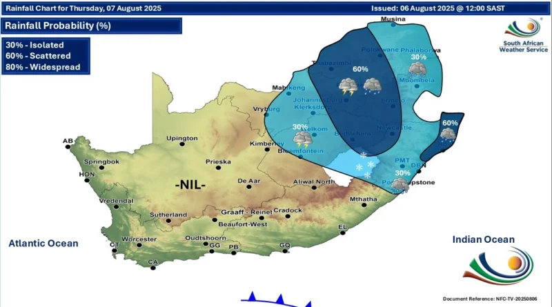 Open ArticleDuring its passage, the central and eastern parts of the country will experience rainfall, with KwaZulu-Natal, Mpumalanga, and Gauteng being affected
