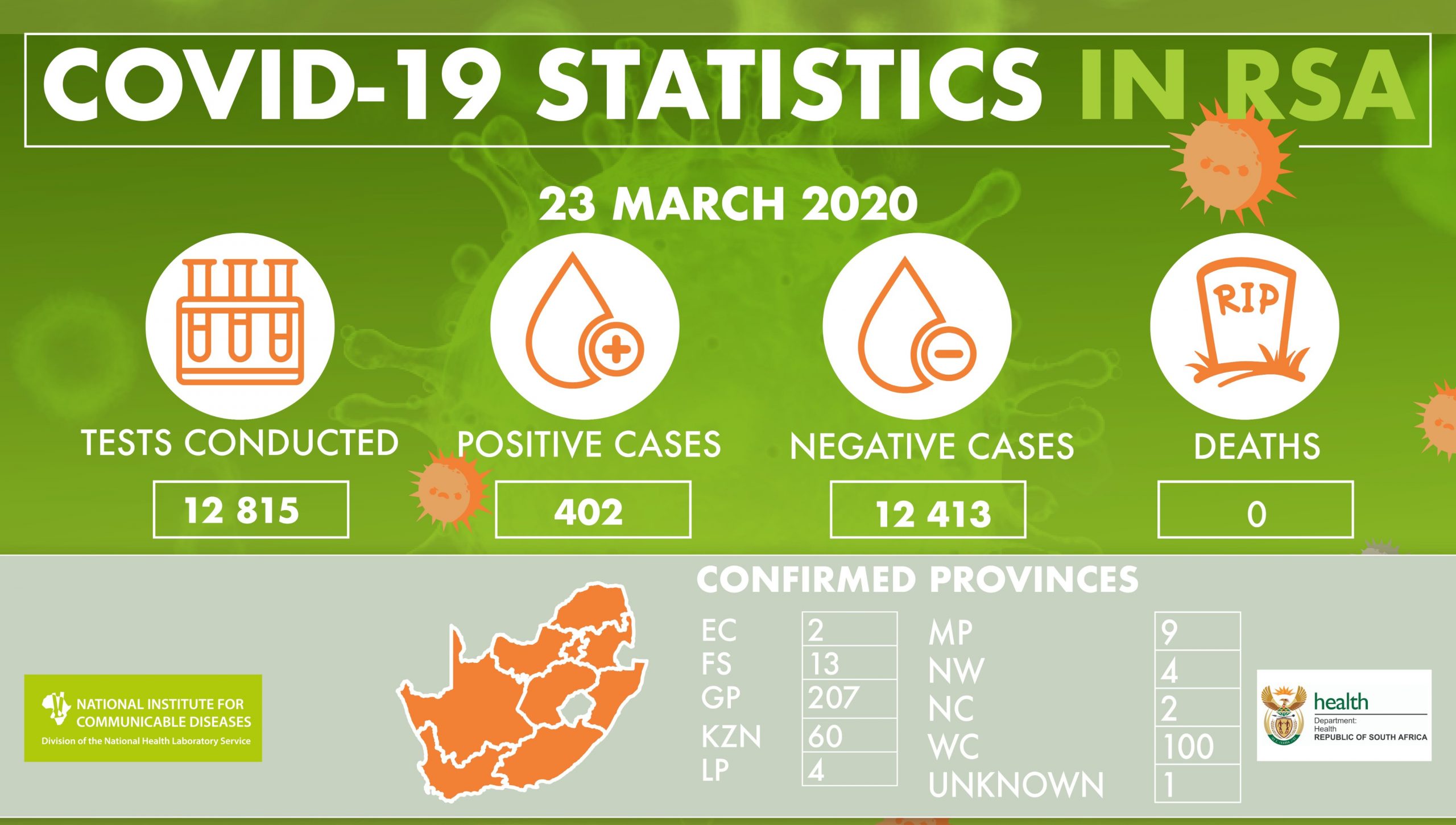Of the new positive COVID-19 cases, the Northern Cape has its first confirmed cases.