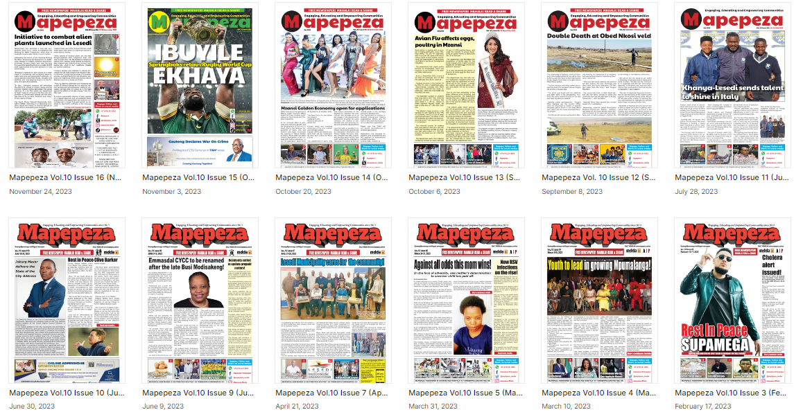 Here are the latest published editions of Mapepeza Community Newspaper. Since June 2025, we are proud to be featured and accessible on the world’s largest digital newsstand, Magzter. Please follow our latest editions there via the app or website.