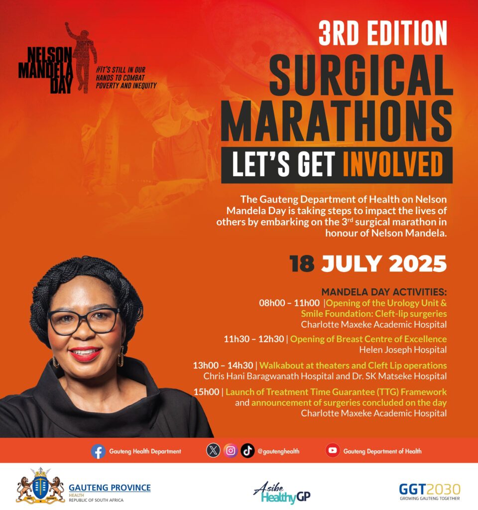 Gauteng’s public hospitals are preparing to perform more than 1,000 surgical procedures on Friday (July 18) in the third annual Mandela Day Surgical Marathon, targeting critical operations that will dramatically improve patients’ quality of life.