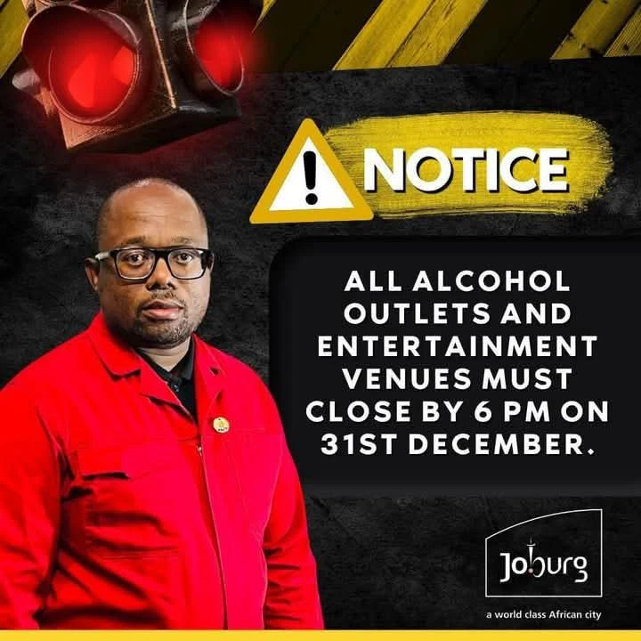 The Joburg Metro Police will be in full force this evening to enforce this moratorium stating all alcohol and entertainment outlets must close by 6pm on Tuesday, December 31.