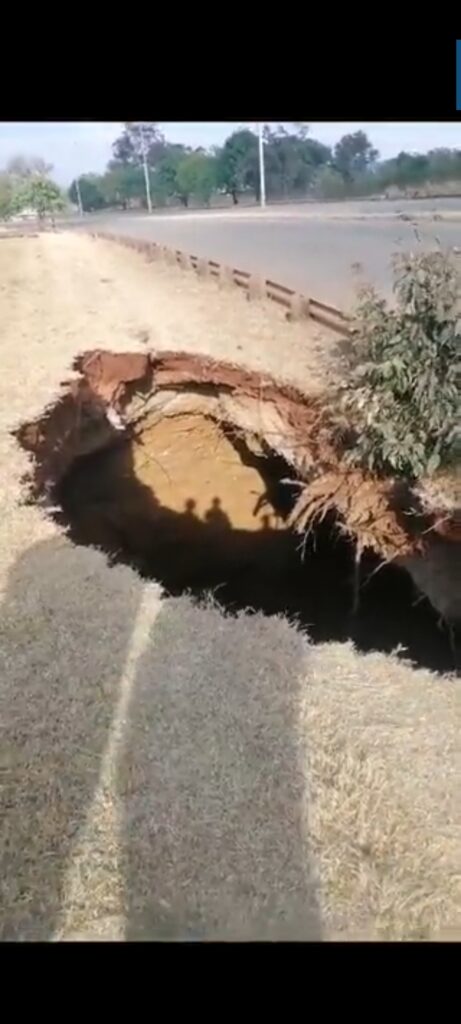 Ronderbult Road on Boksburg has recently seen another sinkhole form next to the first one which developed a few months ago.